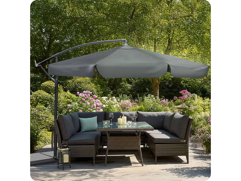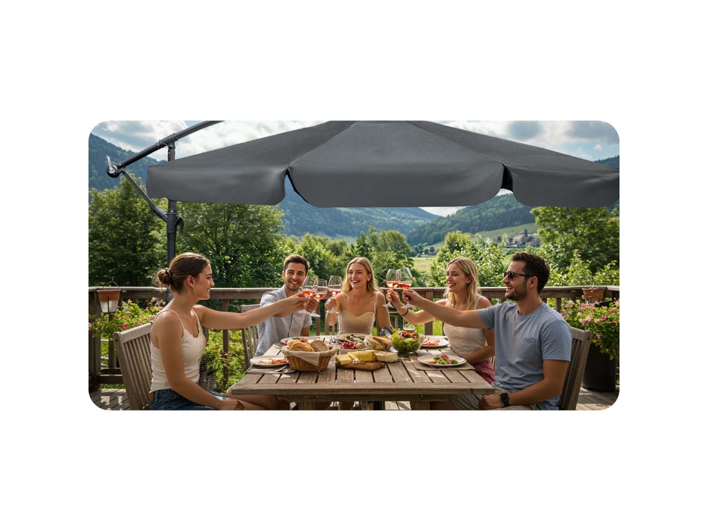 - Materialul umbrelei de grădină este special conceput pentru a fi rezistent la radiațiile UV dăunătoare, oferind protecție pe termen lung împotriva soarelui.
