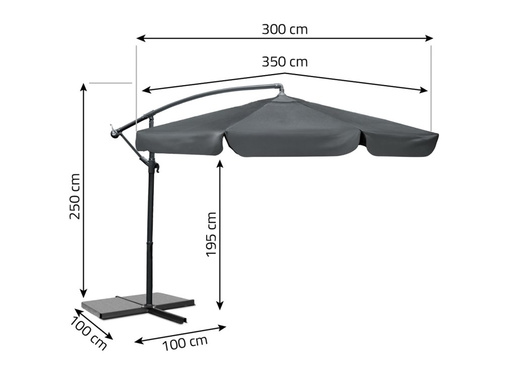 - diametru acoperiș umbrelă: 300 cm