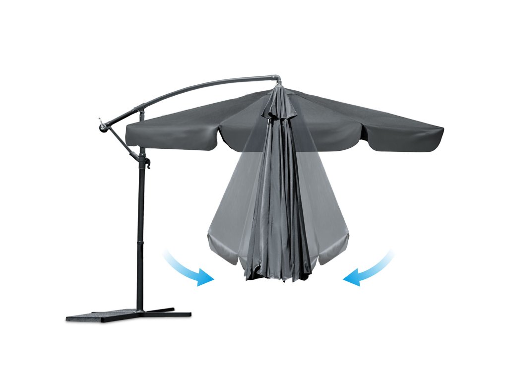 Husa din material rezistent Oxford protejează excelent umbrela împotriva radiațiilor UV dăunătoare și altor influențe meteorologice, prevenind decolorarea materialului și prelungind durata sa de viață.