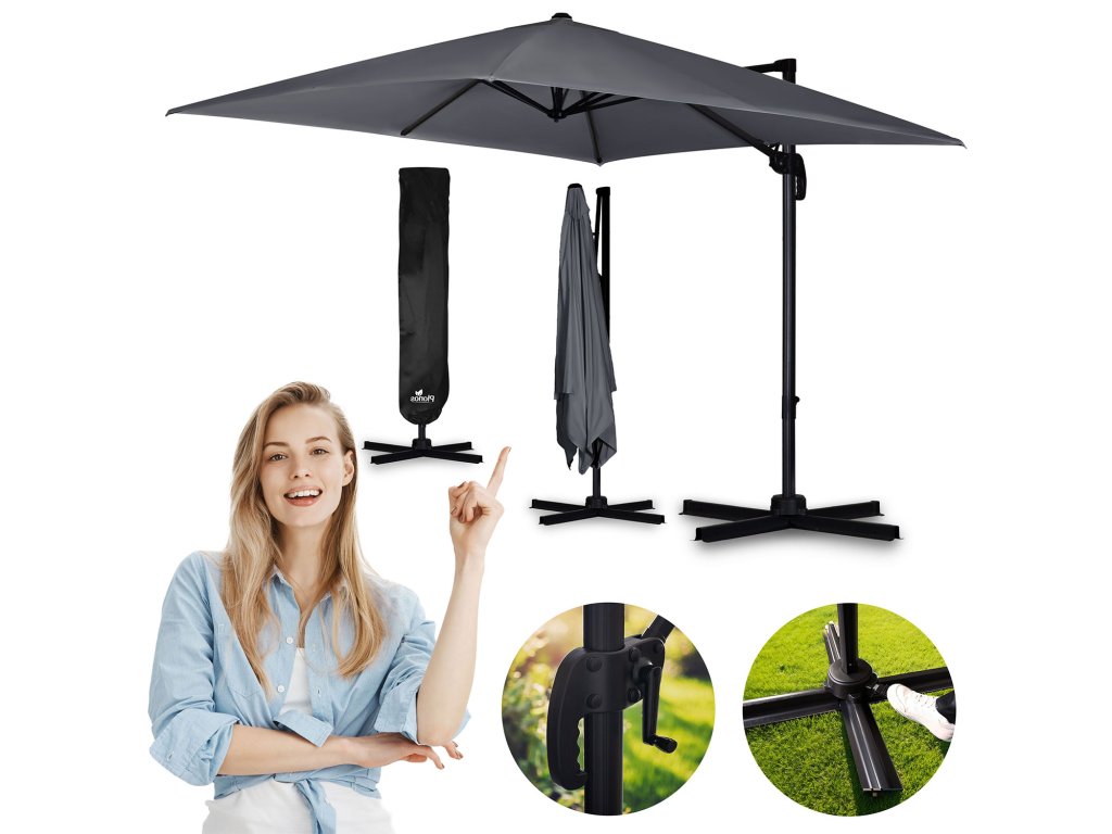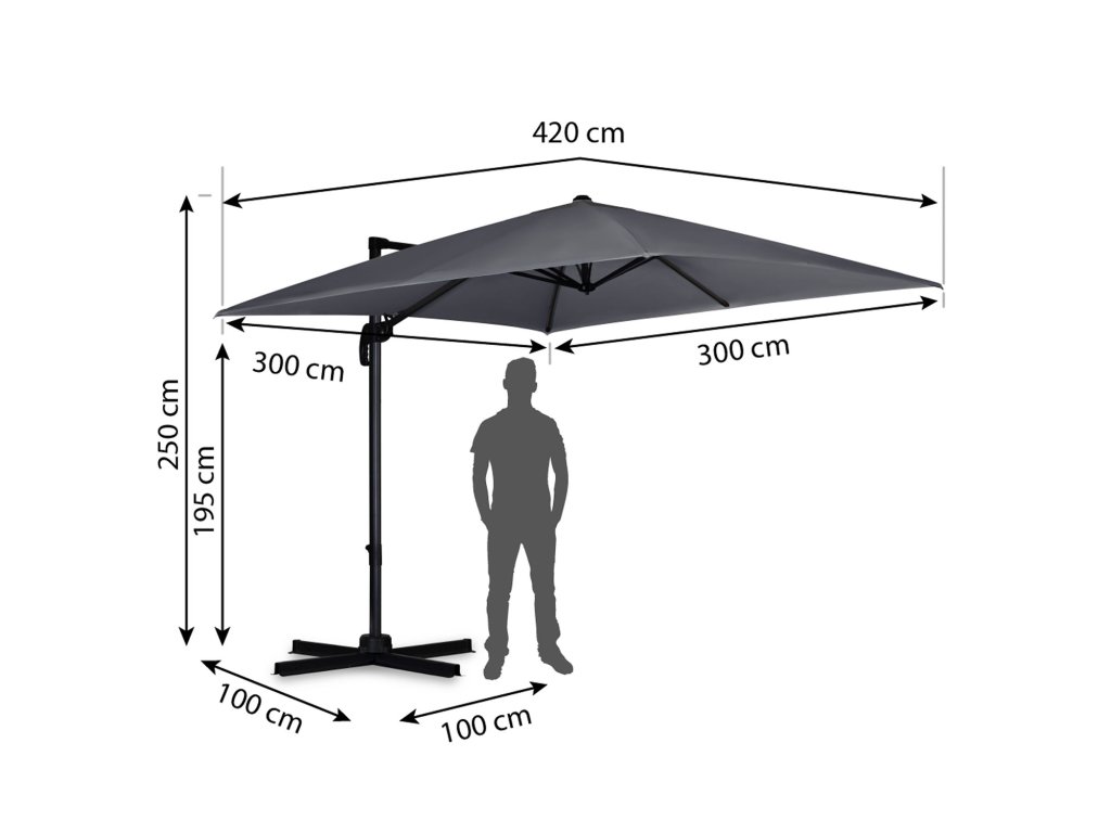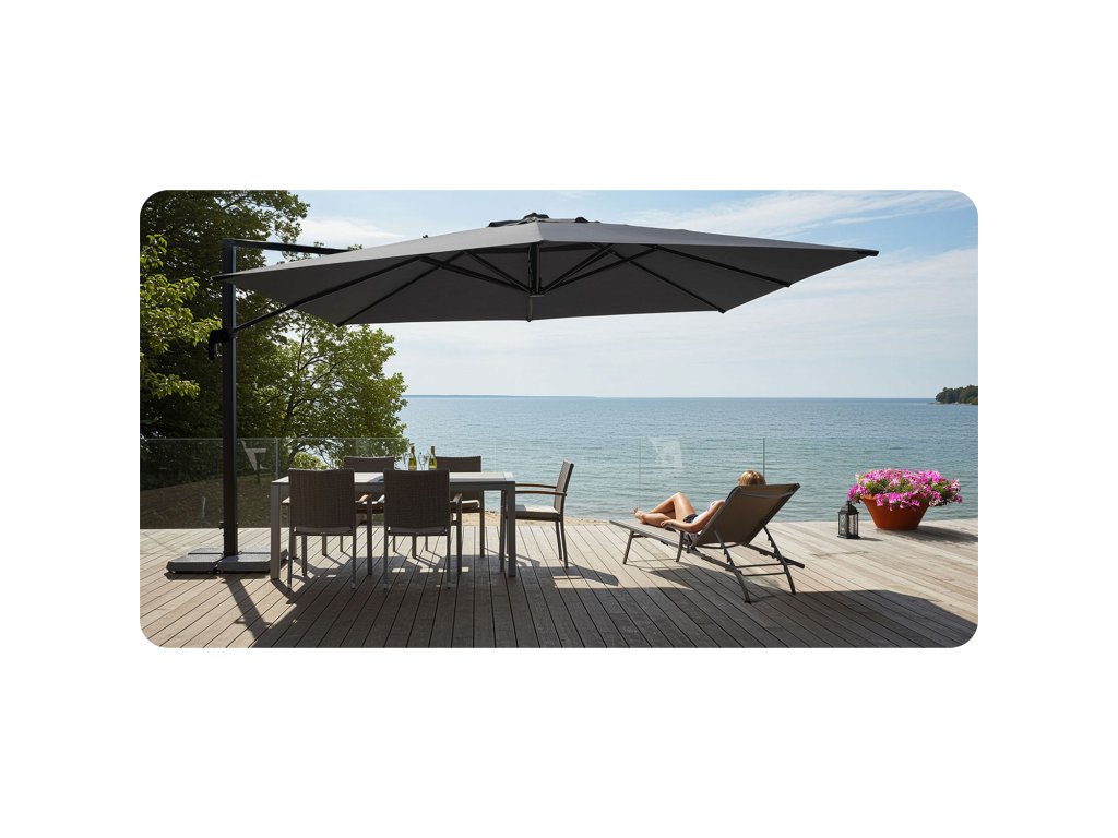 - Posibilitatea de poziționare liberă a umbrelei: înălțime + unghi de înclinare.
