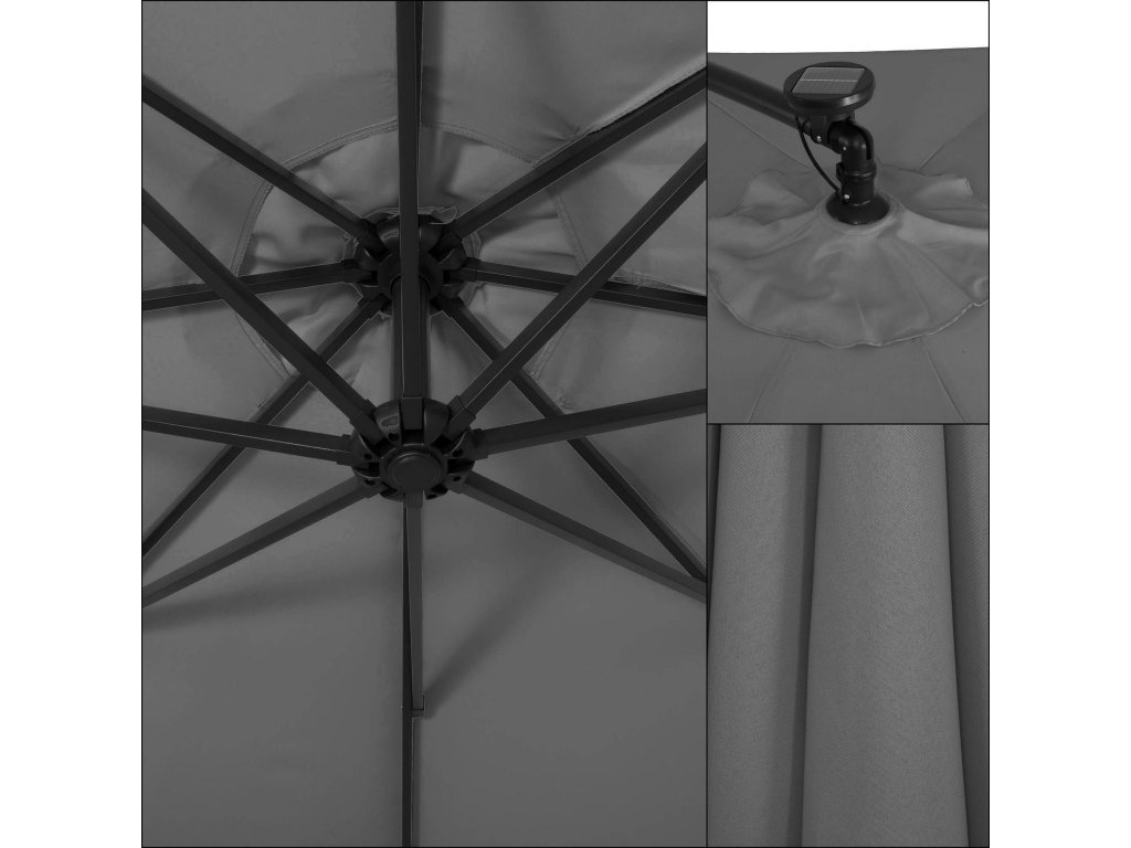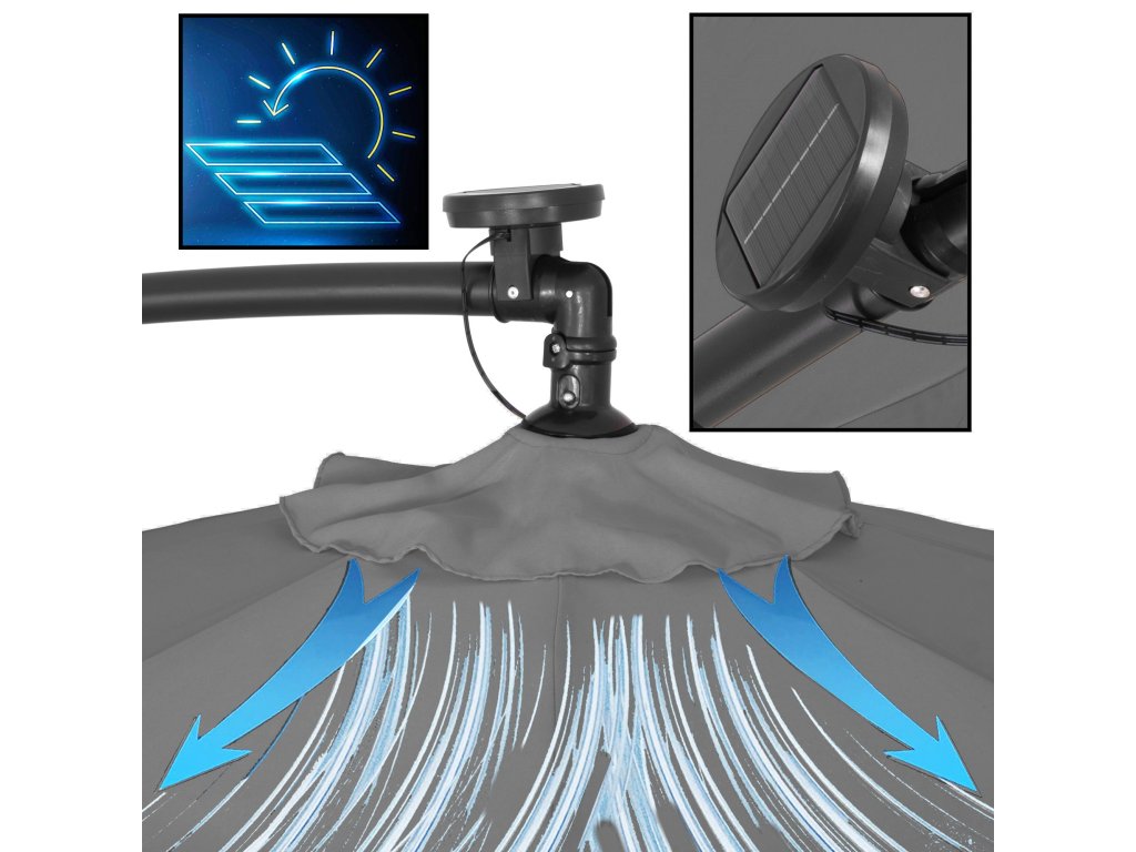 - Panoul solar atașat umbrelei printr-un cablu situat la vârful umbrelei