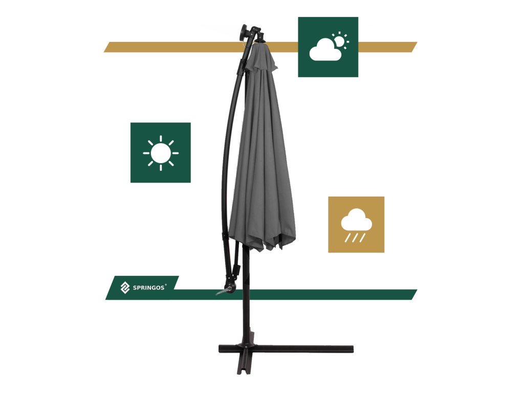 În caz de vânt puternic cu rafale, se recomandă plierea umbrelei datorită dimensiunii acoperișului și siguranței asociate.