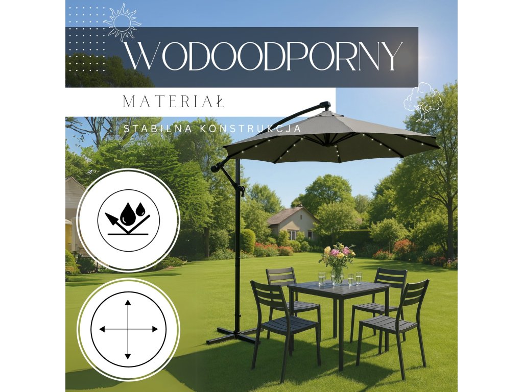 - Lățimea materialului umbrelei (fără volane): 300 cm