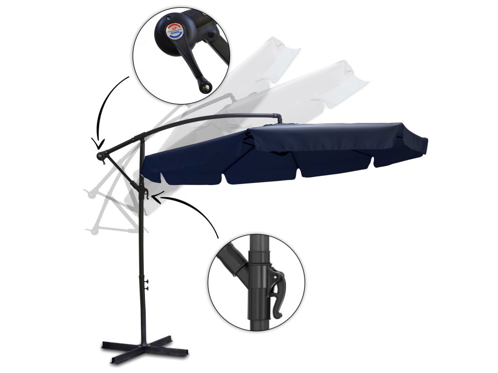 - Posibilitatea unei aranjări libere a umbrelei: înălțime + unghiu de înclinare
