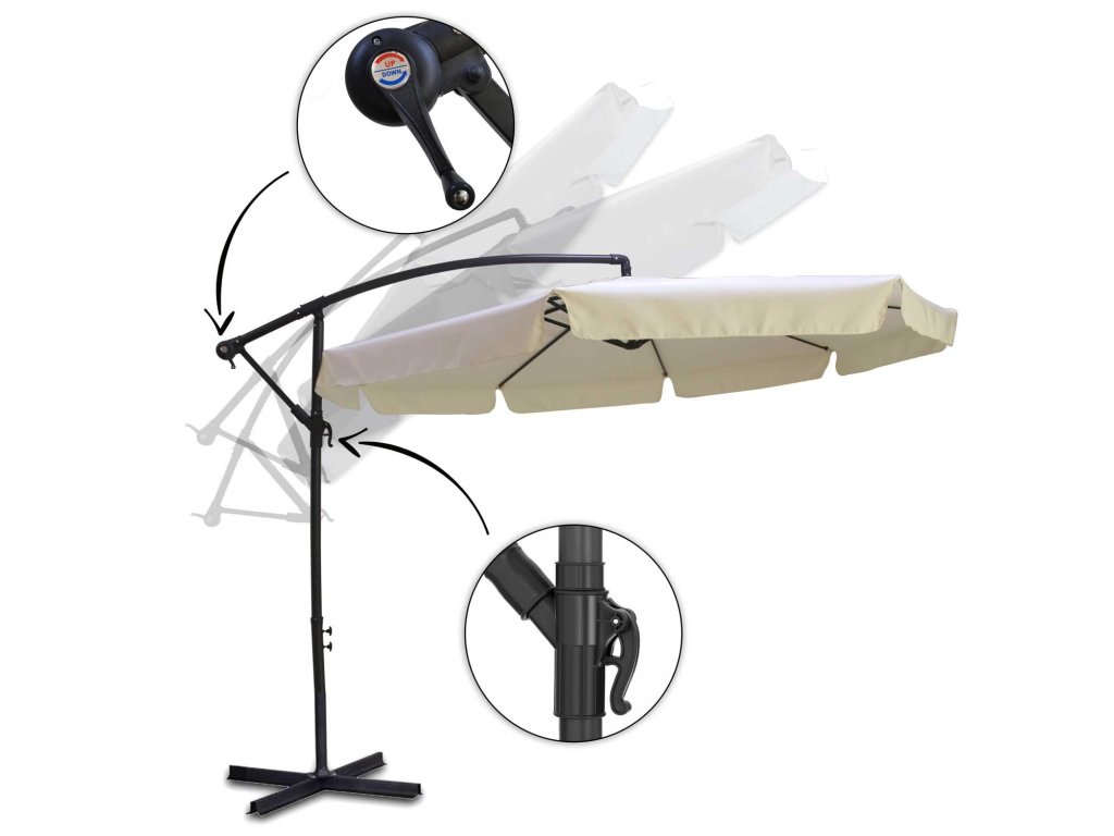 - Umbrela poate fi plasată după nevoi: înălțime + unghi de înclinare