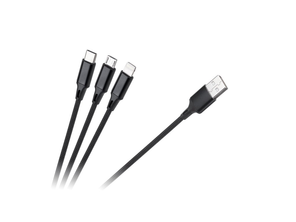 Plecați într-o călătorie și aveți nevoie de un cablu pentru iPhone, un cablu USB C pentru a încărca tableta și un cablu micro USB deoarece cititorul dvs. de cărți electronice îl utilizează Acum puteți înlocui toate aceste accesorii cu unul singur - cablul USB Rebel Comp 3 în 1. Alegând cablul Rebel, aveți certitudinea că ați ales un produs care respectă standardele poloneze și internaționale și datorită calității înalte a materialelor utilizate, vă va servi pentru mult timp.