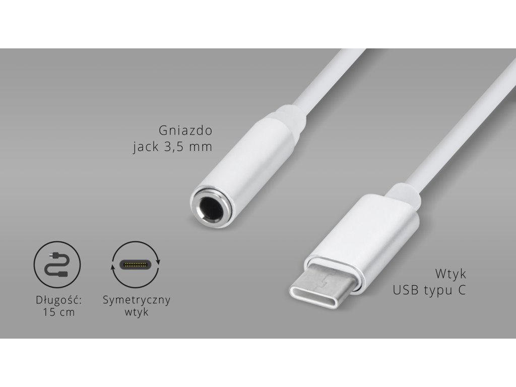 Utilizare: Un adaptor care, printre altele, permite conectarea căștilor cu conector standard jack de 3,5 mm la un smartphone care are doar port de încărcare USB de tip C.