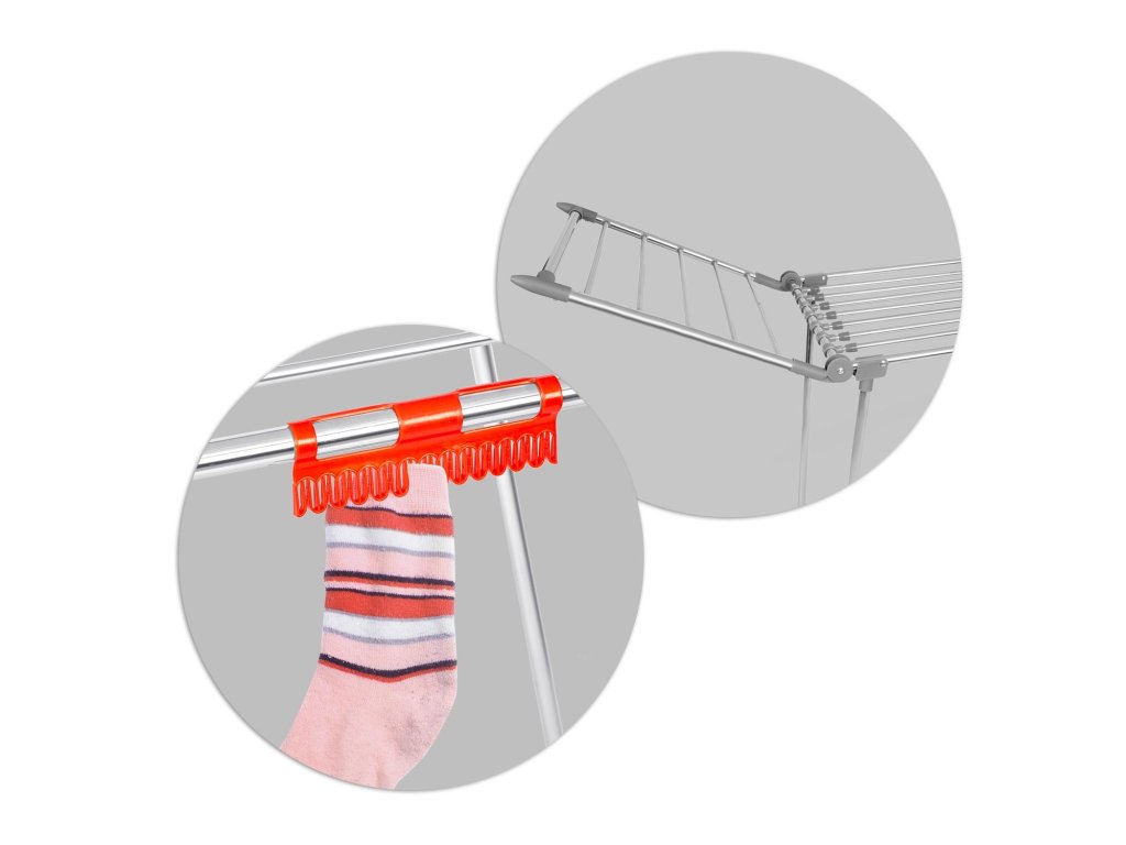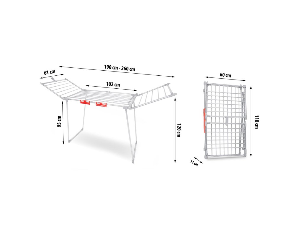 - agățând lenjeria pe mânerele suplimentare destinate acestui scop economisiți spațiu pe uscător,2 brațe rabatabile.