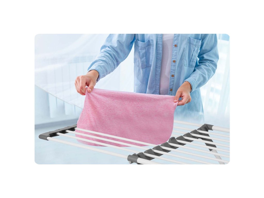 Datorită spațiilor corespunzătoare dintre rânduri, apa se evaporă rapid și rufele vor fi uscate uniform și gata de împăturit!