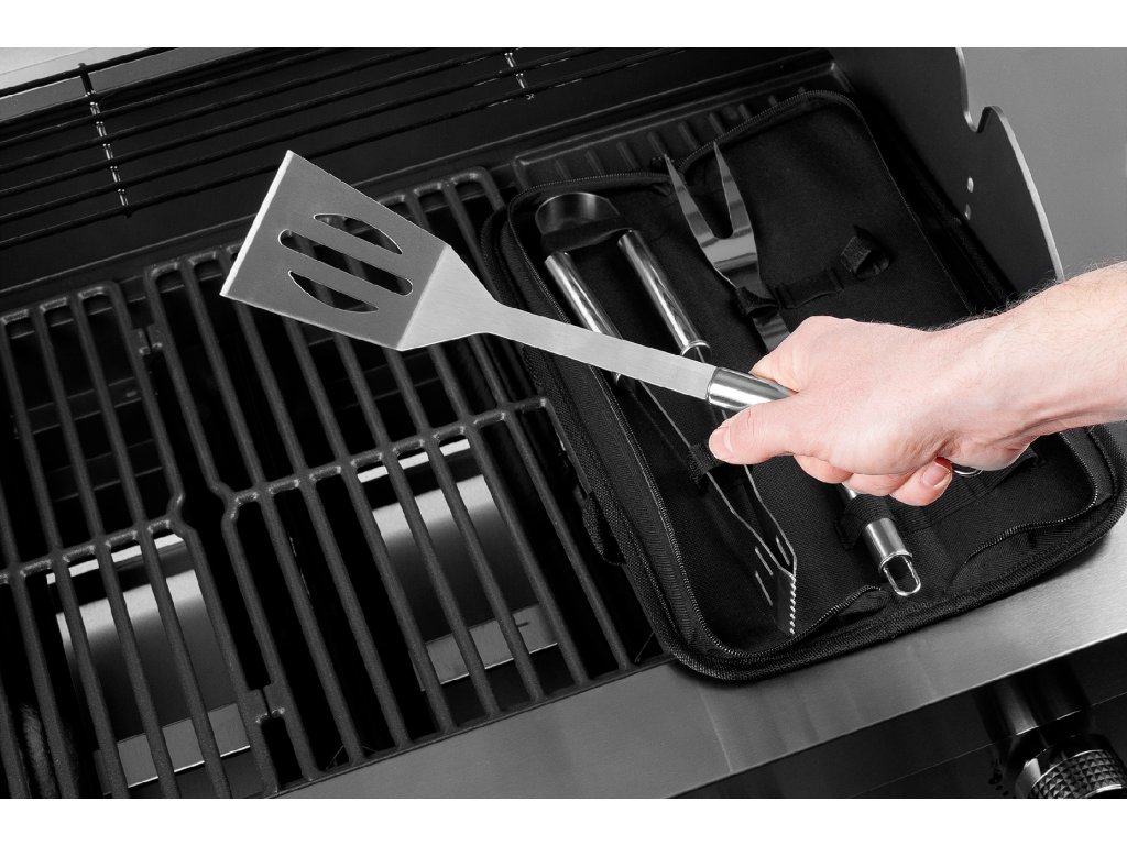 Setul de unelte Teesa este fabricat din oțel inoxidabil și va ușura și va crește siguranța preparării mâncărurilor la grătar. Setul include o spatulă, clești și o furculiță - accesorii de bază care vor spori confortul la întoarcerea sau scoaterea delicateselor pregătite de pe grătar.