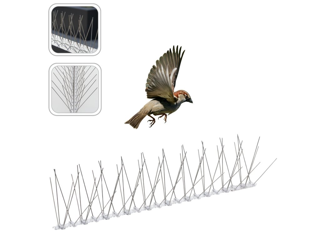 Vârfurile elastice împotriva păsărilor sunt o barieră eficientă care împiedică păsările să se așeze și să cuibărească pe acoperișuri, pervazuri, balustrade sau jgheaburi. Datorită elasticității ridicate, acestea pot fi montate cu ușurință pe aproape orice suprafață. Fiabile, rezistente la condiții meteorologice și sigure pentru animale.