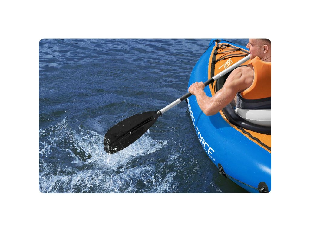 Padeaua este ideală pentru caiace și alte echipamente de apă. Fabricat din aluminiu cu mâner realizat din poliolefină termocontractabilă. Asigură utilizare confortabilă