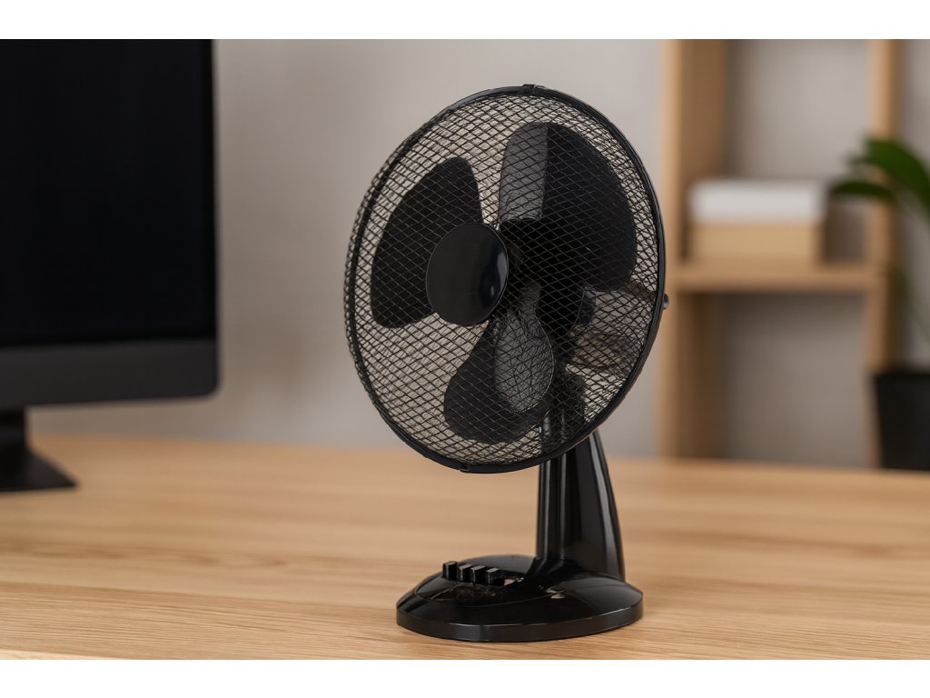 Ventilator de masa, ideal pentru birou, pe masă sau în spații mici, asigurând o răcire confortabilă cu posibilitatea de reglare a vitezei și a unghiului de poziție.