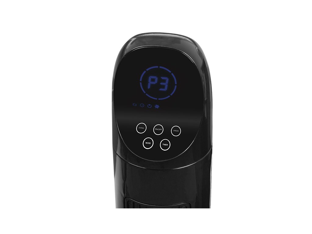 Ventilator pe stâlp de 90W LCD + telecomandă 44-075- Tower Fan cu o putere de 90W este un dispozitiv de neînlocuit în timpul căldurilor de vară. Ideal pentru casă sau birou. Ventilatorul are până la 3 trepte de funcționare și funcție de oscilație, datorită căreia putem fi siguri că aerul va circula în întreaga încăpere. Utilizarea unui capac închis asigură siguranța copiilor noștri, astfel că aceștia nu își vor introduce degetele sau alte obiecte care ar putea să le pericliteze sănătatea. Ventilatorul dispune de o funcție care permite setarea timpului de funcționare al dispozitivului nostru, ceea ce îl face și mai funcțional decât ventilatoarele standard.Datorită panoului de control tactil intuitiv și al telecomenzii, controlul ventilatorului este simplu și plăcut.Produsul are un comutator oscilant, așa că puteți seta fluxul de aer într-un singur loc la alegerea dumneavoastră. Specificații tehnice:- Panou de control tactil