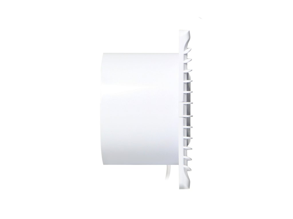 Un ventilator de baie util, care evacuează automat aerul umed. Este destinat pentru montare pe perete. Un dispozitiv foarte silențios, care se ocupă de calitatea aerului în baie, dar nu va deranja zona noastră de relaxare. Ventilatorul are un design compact și un tub de evacuare scurt cu un diametru de 125 mm, care se potrivește și în canale de ventilație puțin adânci. Ventilatorul are un cablu cu întrerupător.Parametri suplimentari