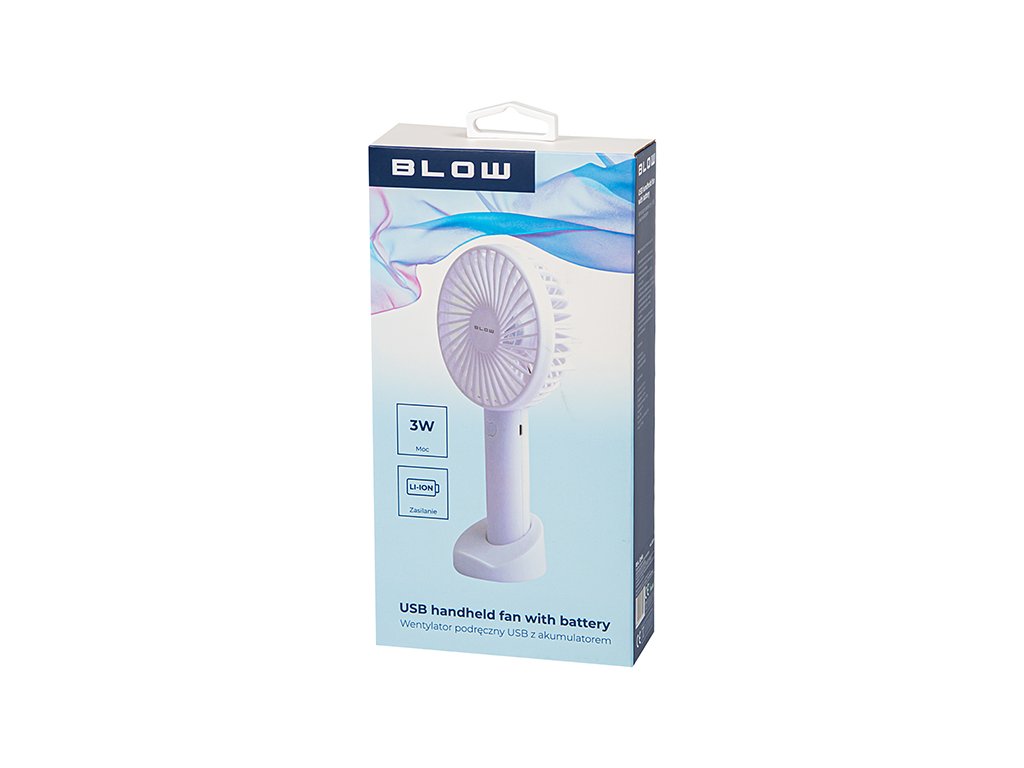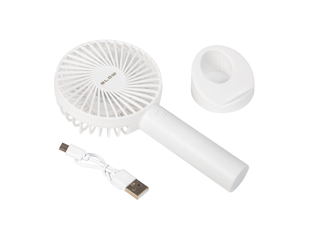 Ventilator USB portabil cu baterie alb.