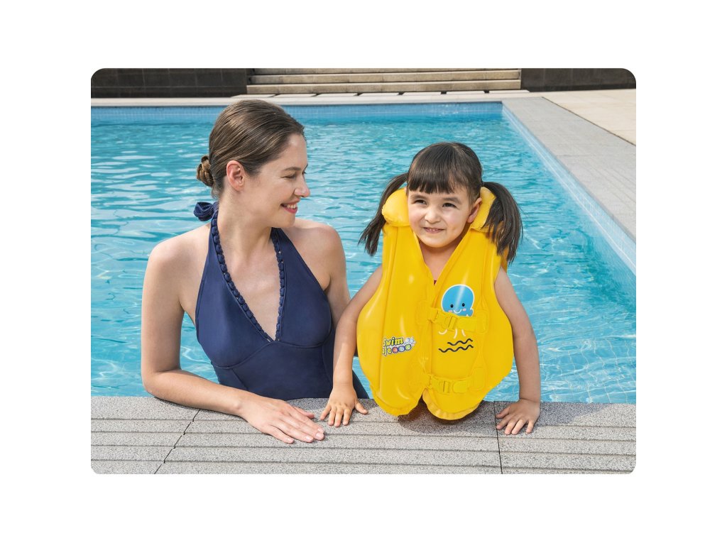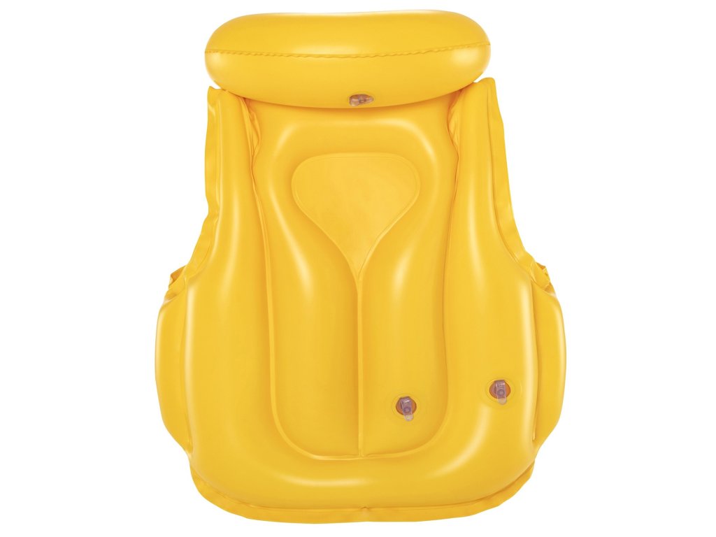 Vestă cu dimensiunile de 51 cm x 46 cm, sub supravegherea unui adult, oferă micilor înotători siguranță completă. Trei camere de aer independente mențin copilul pe suprafață și gulerul gonflabil previne scufundarea capului în apă. Vestă este închisă cu două catarame ajustabile, astfel încât copilul să nu iasă din ea singur. În plus, culoarea galbenă te va ajuta să găsești rapid copilul tău în mulțimea de vizitatori de pe plajă.
