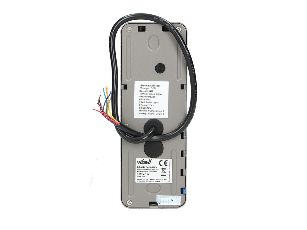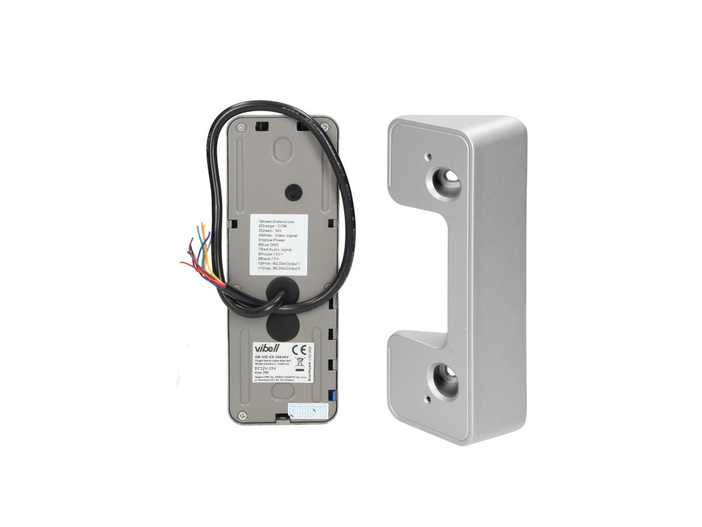 Exemplu de set VIBELL - Setul de videofon ALCOR include un monitor LCD multicolor, foarte subțire, de 7" și o cameră video cu unghi larg foarte rezistentă. Comunicarea dintre panourile interioare și exterioare nu necesită un interfon. Are un meniu OSD prietenos pentru utilizator, care este folosit pentru setarea imediată a parametrilor monitorului. Iluminarea suplimentară a panoului camerei, asigurată de diode LED luminoase, permite o vizibilitate excelentă pe timp de noapte. În plus, are o tastatură numerică și un cititor RFID, care servește pentru autentificarea doar a utilizatorilor autorizați. Setul permite funcția de control al porții și deschiderea ieșirii din broasca ușii. Funcțiile suplimentare necesită o sursă de alimentare adițională (inclusă în pachet). Culori disponibile: negru și alb.Specificație tehnică:
