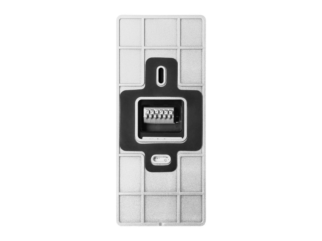 Număr de butoane de apel:1Metodă de montare:Montare de suprafață (tencuială)Rezoluția camerei:1920 x 1080Unghiul de deschidere al camerei (orizontal):112°Unghiul de deschidere al camerei (vertical):55°Iluminare nocturnă:ACititor de carduri și etichete fără contact:DaFrecvența cardurilor și etichetelor fără contact:125 kHzSuprafață de etichetare/informații:NuCu capac:DaGrad de protecție (IP):IP65Materialul părții frontale:aluminiuLățime:67 mmÎnălțime:160 mmAdâncime:33 mmInformații generale