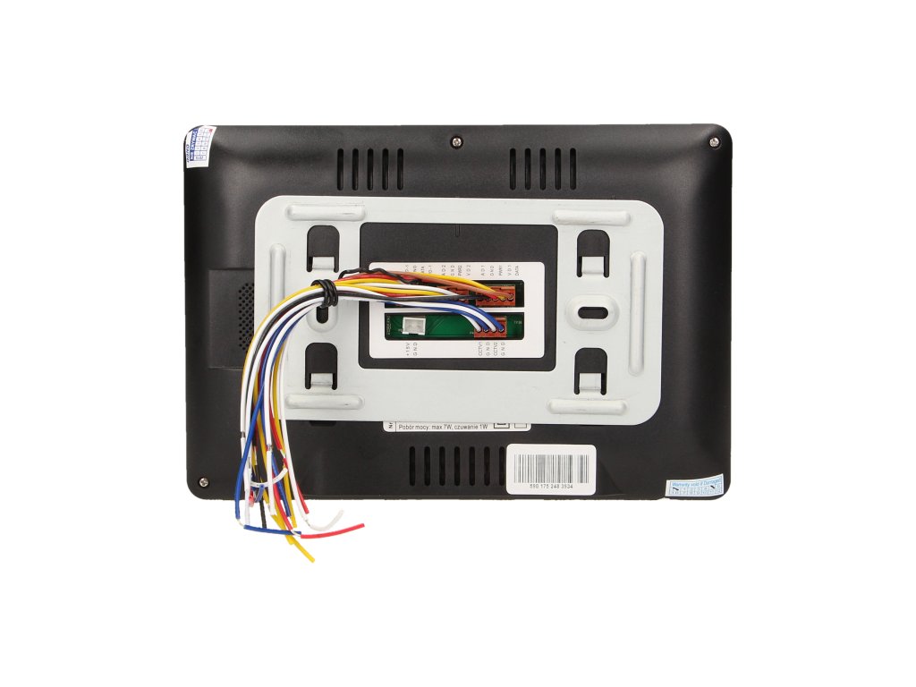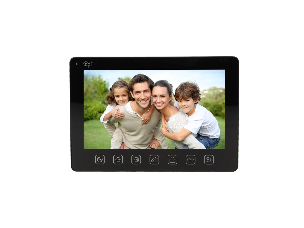 Videointerfon EXEDRA negru cu ecran LCD multicolor, foarte subțire, de 7", care poate fi folosit pentru monitorizarea a două intrări (se poate conecta la 2 camere video). Monitorul său tactil are butoane iluminate și este disponibil în două variante de culoare (alb sau negru). Meniul OSD este disponibil atât în versiunea poloneză, cât și în engleză. Alte caracteristici ale setului: reglarea lină a parametrilor monitorului (luminozitate și culoare, volum apel și sonerie, timp de apel), 12 tonuri de apel de ales, obiectiv de cameră cu unghi larg, carcasă antivandal pentru unitatea externă, viziune nocturnă excelentă garantată de LED-uri luminoase, funcție de intercom cu utilizarea unui alt monitor. Setul este alimentat de o unitate de alimentare de 14,5 V CC, care este inclusă, dar încuietoarea electrică necesită o unitate de alimentare suplimentară de 12 V CC.Informații generale: