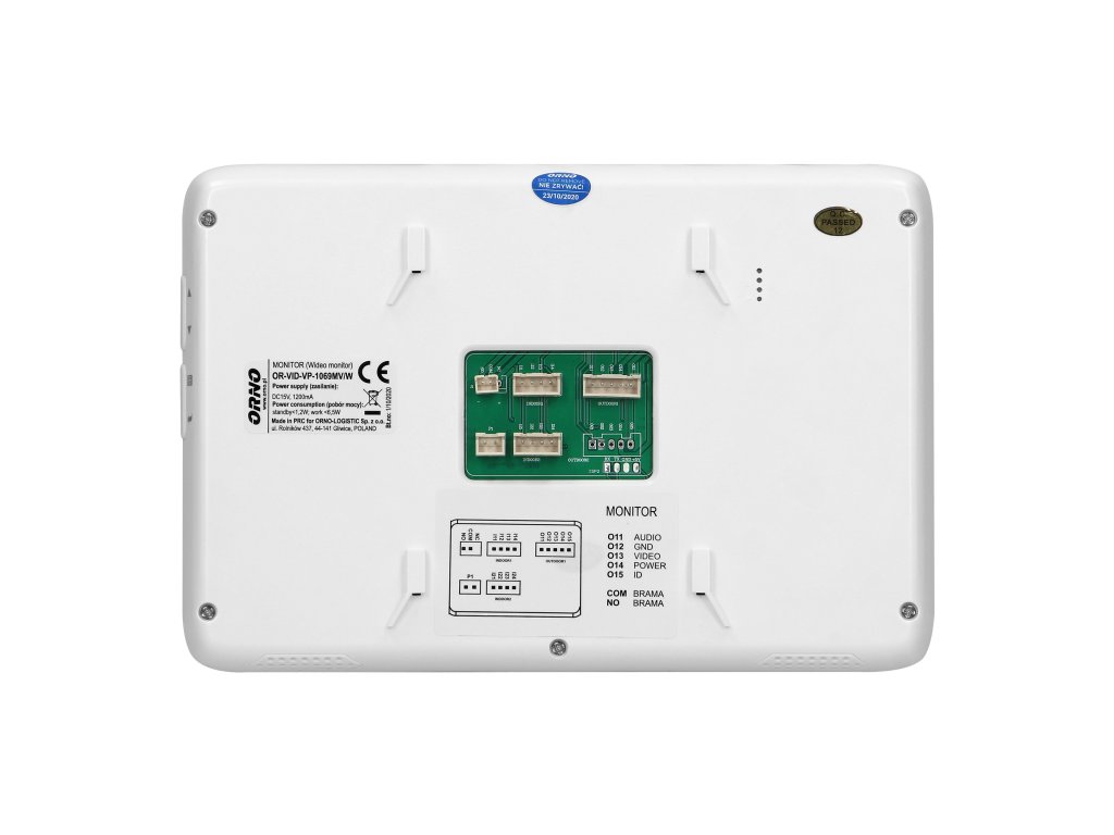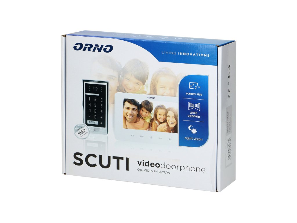 Videointerfonul SCUTI alb include un monitor LCD multicolor, foarte subțire, de 7" cu panou tactil și butoane iluminate. Parametrii monitorului (luminozitatea și culoarea, volumul vorbirii și al soneriei) pot fi ajustați. Sunt disponibile 16 tonuri de apel. Unitatea exterioară cu cameră CMOS este potrivită pentru montaj de suprafață. Are o copertină de protecție, etichetă cu numele și diode infraroșii care asigură o vizibilitate excelentă pe timp de noapte. În plus, unitatea exterioară are o tastatură numerică iluminată (lacăt cu cod), care permite accesul doar vizitatorilor autorizați. Setul sprijină deschiderea porții și, dacă îi adăugați un monitor suplimentar, puteți activa funcția de interfon. Alimentare DC de la unitate la priză electrică (15 V DC) sau opțional de la sursa de alimentare pe șină DIN (OR-VID-VP-1009ZD). Electromagnetul electric potrivit pentru 12V DC și un consum de energie max. 300 mA nu necesită o sursă de alimentare suplimentară.Specificații tehnice:
