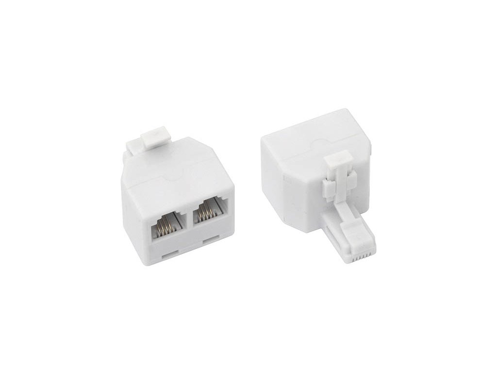 Splitter telefonic cu un singur ștecher și două prize 6P4C (RJ14).